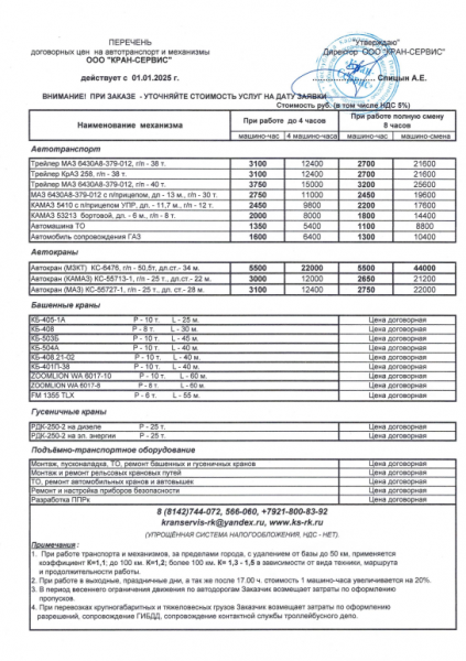 ООО «КРАН-СЕРВИС» предлагает услуги по аренде:
