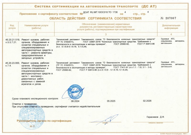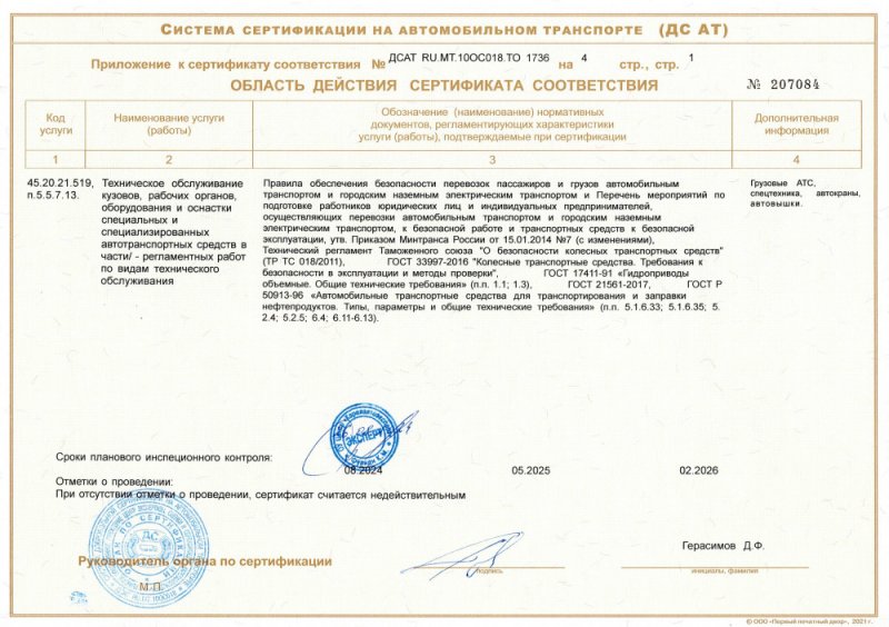 - Проведение частичного (ЧТО) и полного (ПТО) технического освидетельствования автокранов и автовышек.